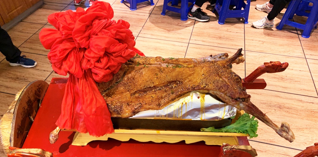 挥别了爬山的疲劳,迎着晚霞,期盼已久的烤全羊晚宴正式登场。在开羊仪式和蒙古歌曲的陪衬下,同事们杯觥交织,舒怀痛饮。三杯两盏淡酒喝下,新老同事情得熟络起来,跨部分同事之间更是聊得火热。我想这就是团建的意义,让各人越发融入整体,也为差别部分之间的相助往来搭建了桥梁。