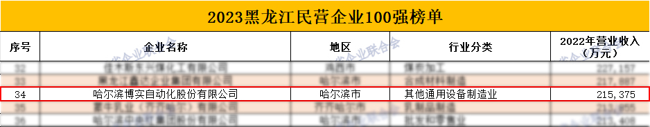 12月4日,省企业联合会、省企业家协会、省工业经济联合会、省社会科学院、黑龙江日报报业集团、黑龙江广播电视台联合宣布2023黑龙江企业百强榜。本次百强榜共包括2023黑龙江企业100强、2023黑龙江制造业企业100强、2023黑龙江效劳业企业100强、2023黑龙江民营企业100强和2023重点行业榜单五项内容。