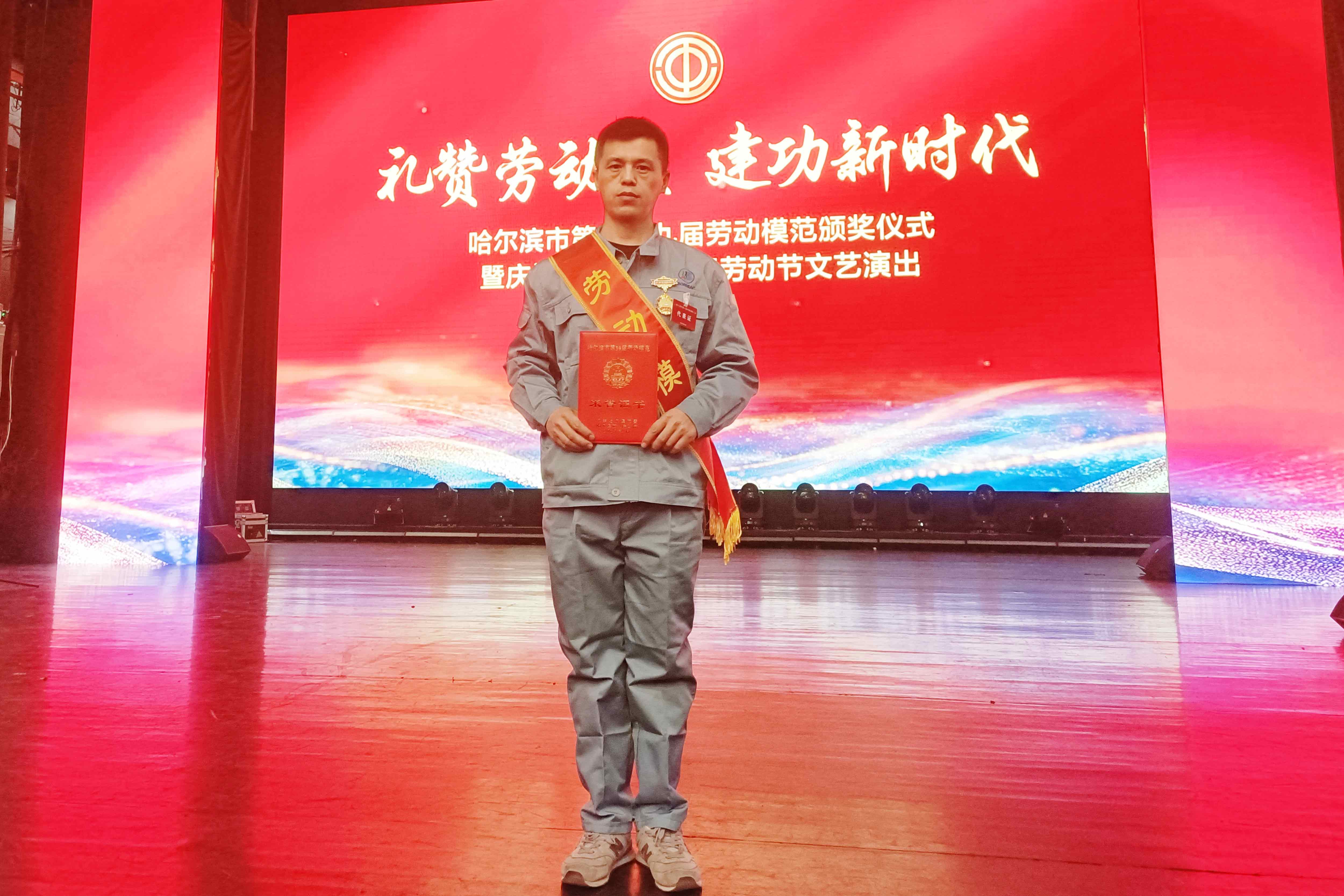 4月27日,在五一国际劳动节来临之际,哈尔滨市第三十九届劳动模范颁奖仪式于哈尔滨市工人文化宫剧场盛大举行。经严酷的部分推选、公司推荐及主管单位逐级评审,公司生产装置部生产主管赵晓明同志脱颖而出,荣获“劳动模范”称呼并接受表扬。